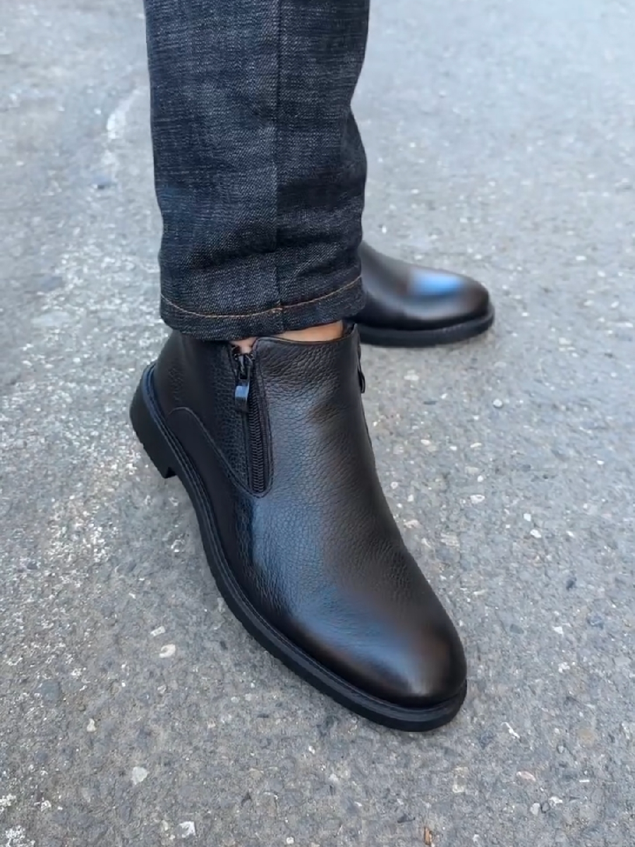 Men's Double Zipper Wool Lined Ankle Boots