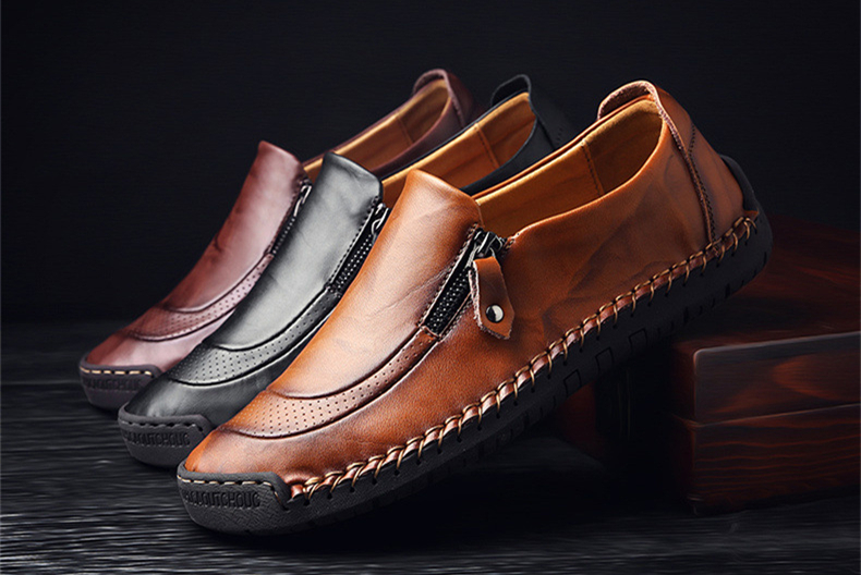 - HIGH QUALITY : The upper is made of premium leather with clear texture and used soft and double handmade sewing so that the hand stitching zipper shoes can be durable and firm.