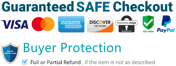 The Checkout Process is Guaranteed to be 100% Safe and Secure with Visa, Mastercard, AMex, Discover, Apple Pay or PayPal.